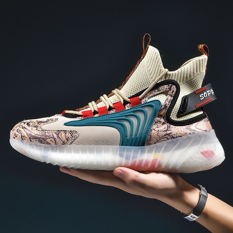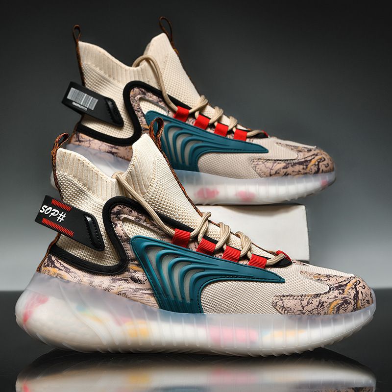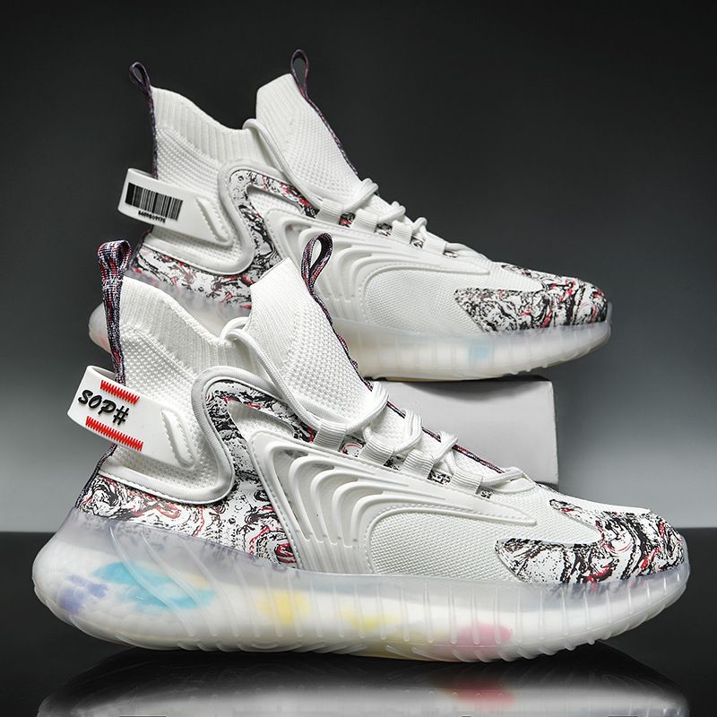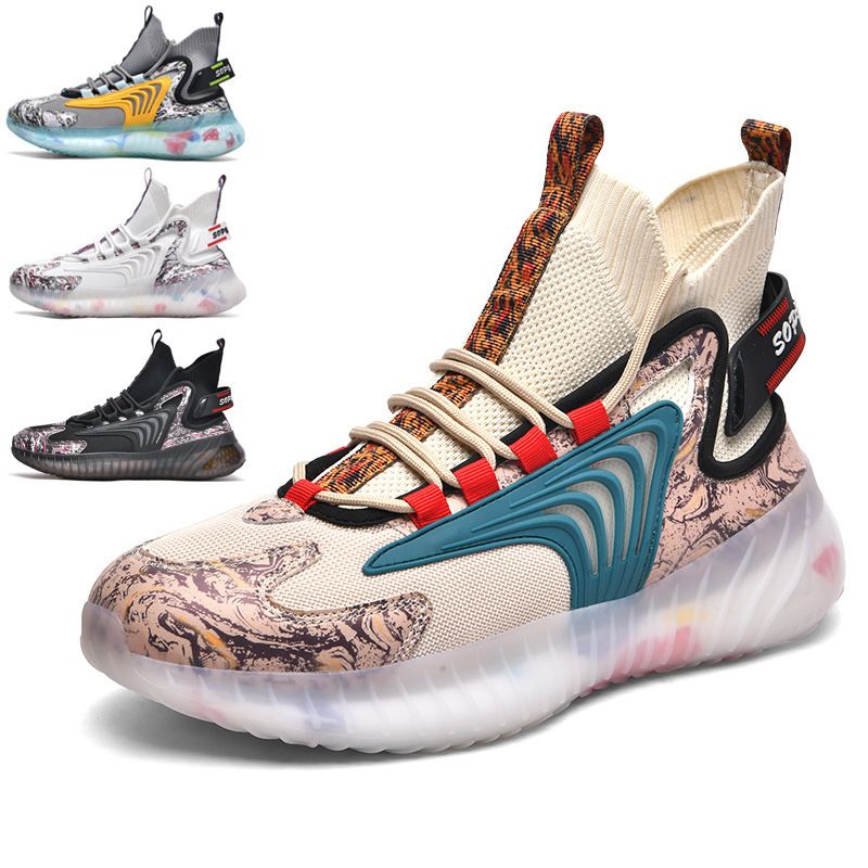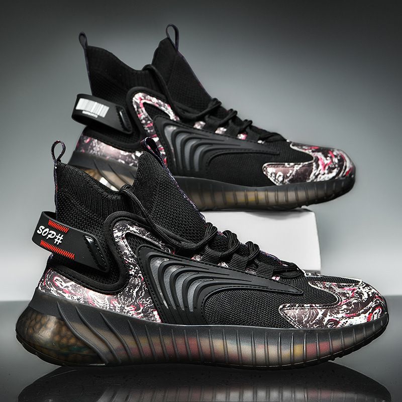 Breathable Flying Woven Sports Casual Shoes Camouflage Jelly Bottom Running Shoes Old Shoes Black and white 39