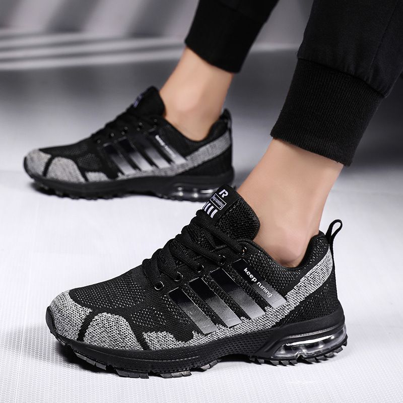Breathable Men's Casual Shoes Flying Woven Foreign Trade Air Cushion Fitness Sports Running Shoes Grey 38