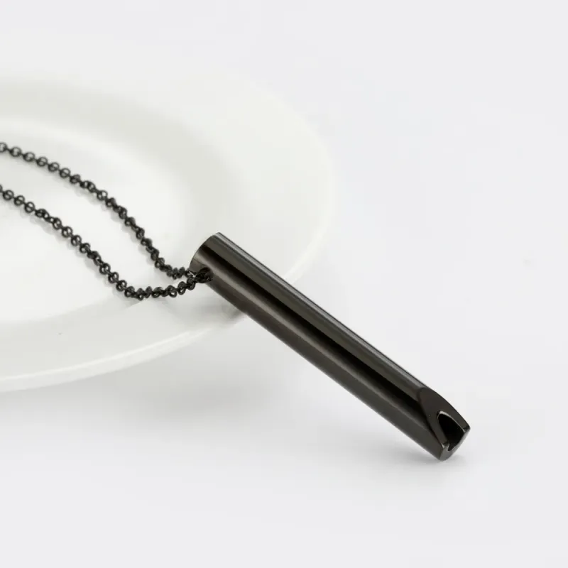Breathing Decompresses Whistle Pendant Necklace for Women Men Fashion Stainless Steel Relieves Stress Collar Jewelry Colorfast