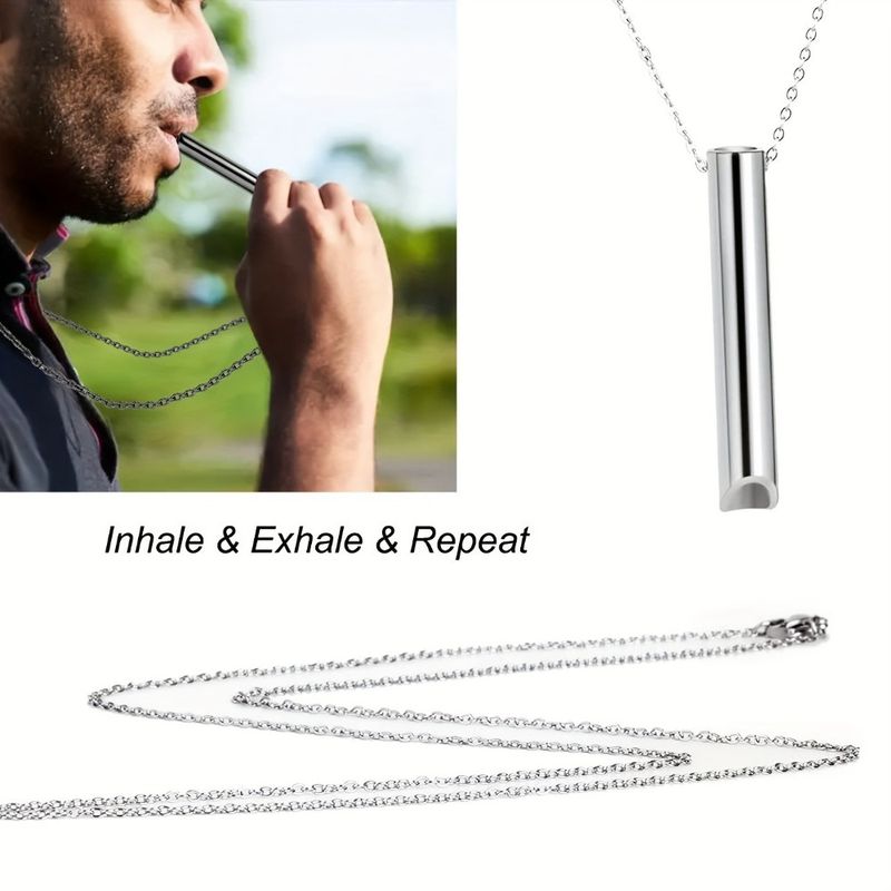 Breathing Decompresses Whistle Pendant Necklace for Women Men Fashion Stainless Steel Relieves Stress Collar Jewelry Colorfast