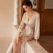 Bride French Luxury Long Silk Nightgown Champagne and slippers gift bo M