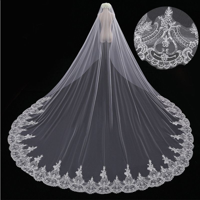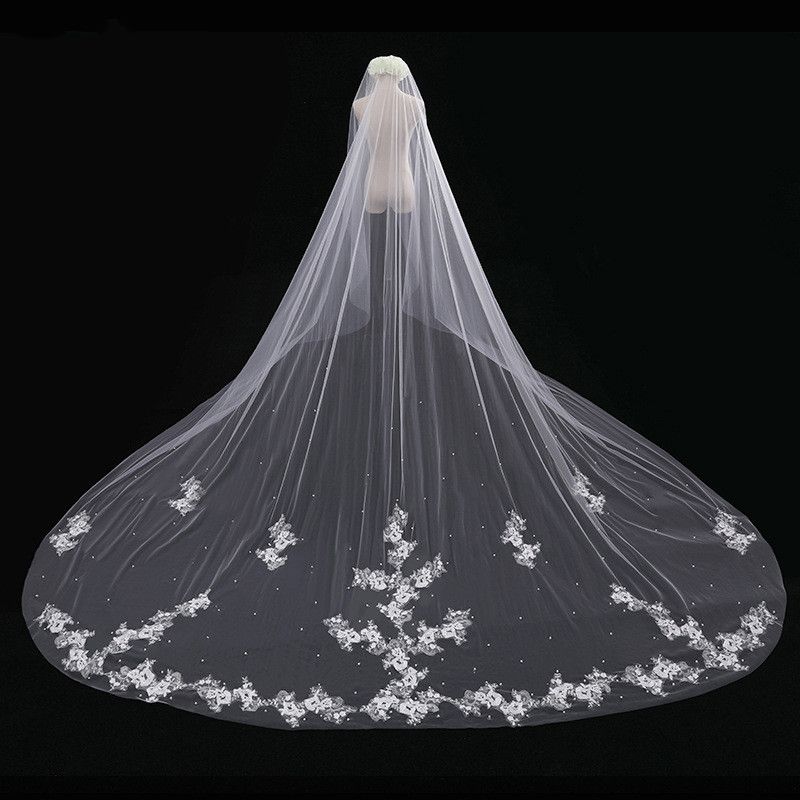 Bride Wedding Long Veil Photo Props Veil Tail Luxury 4colour