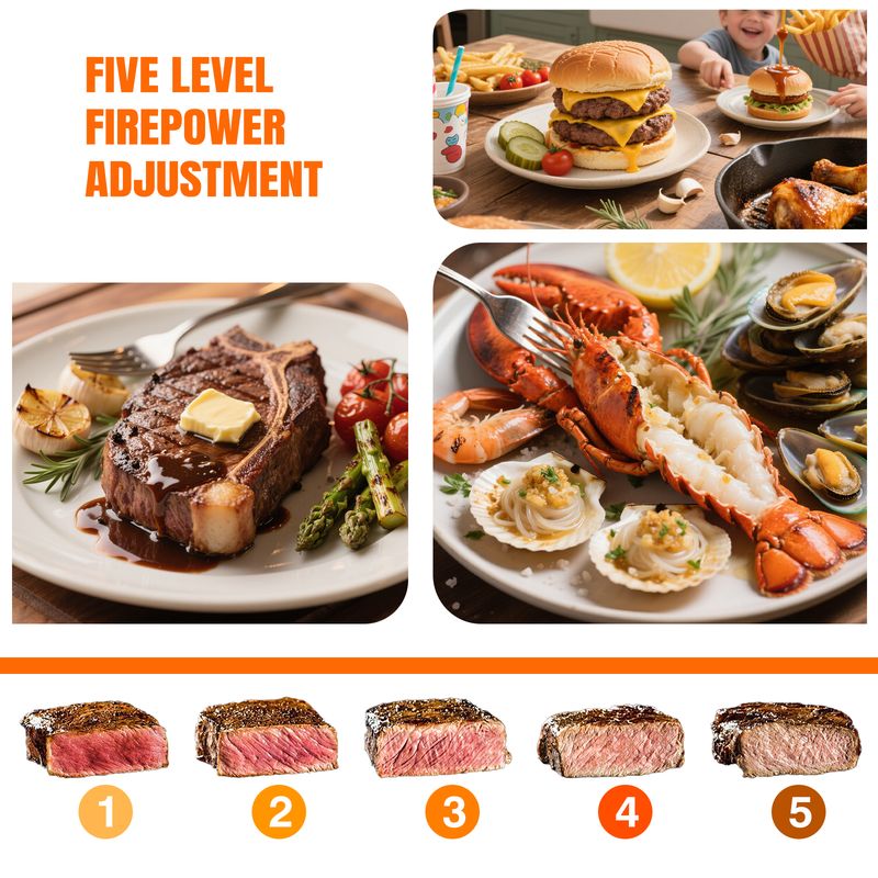 ▶ The entire grilling grate is heated at the same time, so the food is cooked better and tastes better. The temperature controller can help you adjust the cooking temperature to meet your needs and to make delicious food.