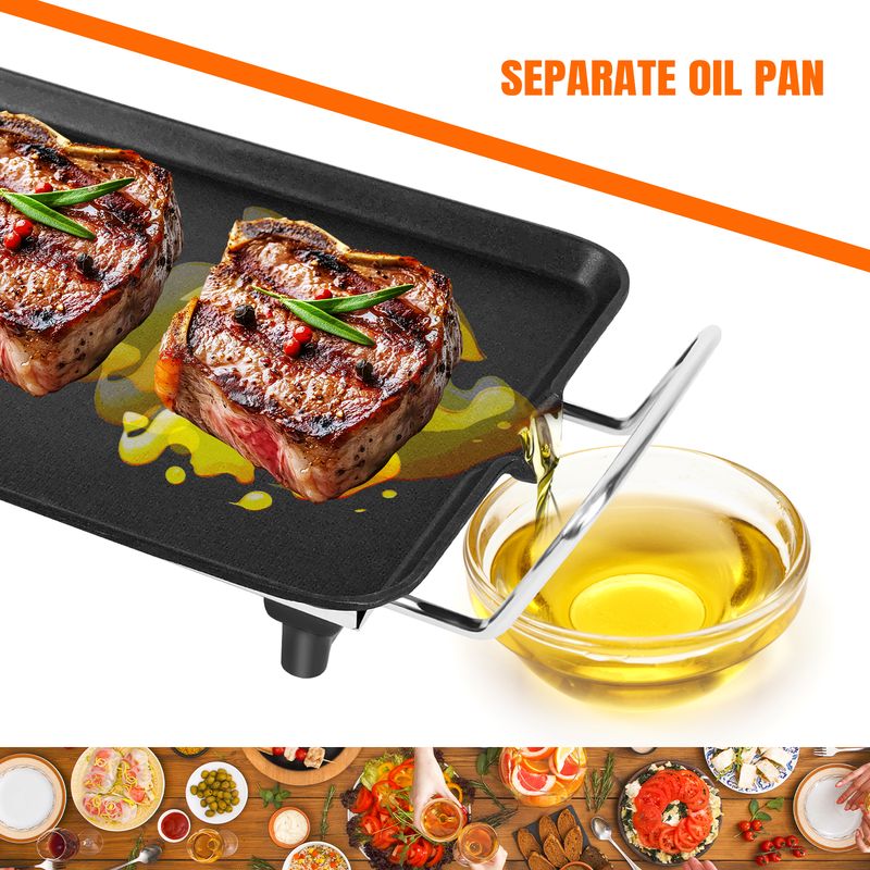 ▶ It is BBQ time all year round with the Smokeless BBQ Grill, thanks to its Smokeless Technology. Different from the charcoal grill, this electric grill griddle can greatly eliminate the smoke produced by burning, which allows you to enjoy the fun of grilling indoors.