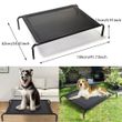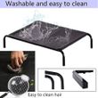 - This elevated folding pet bed is equipped with waterproof and breathable mesh, with black steel frame.
