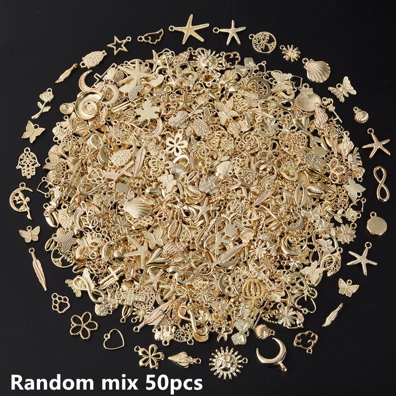 Bright Gold Color Random Mix 10/20/30/50/100pcs Starfish Hasama Butterfly Metal DIY Pendant Charm For Jewelry Making Accessories