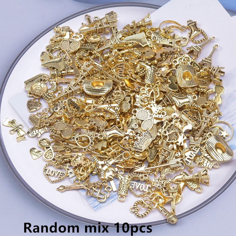 Bright Gold Color Random Mix 10/20/30/50/100pcs Starfish Hasama Butterfly Metal DIY Pendant Charm For Jewelry Making Accessories