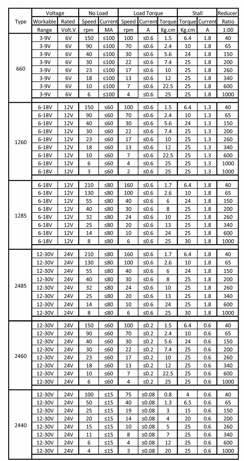 1) Before you buy, we have a reminder, please carefully check the following parameters table, you can see the rated load torque and stall torque, if you choose one of the speed, your project load can not exceed the rated load, otherwise the motor current will increase, the motor operating temperature increases, after a period of time, the gear will be worn, line will be burnd, the motor will be damaged, can not continue to work.