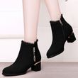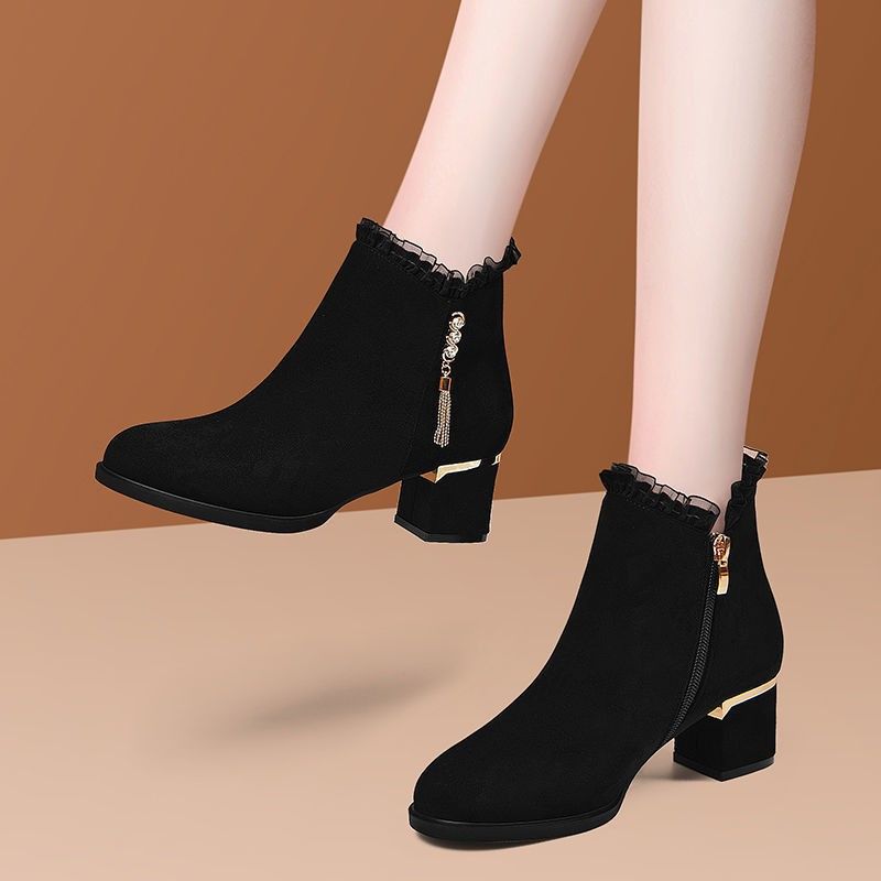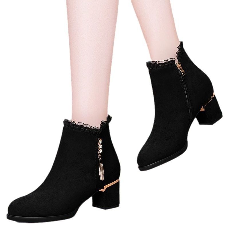 British Style Winter Boots Women - Round Toe Tassel Furry Lined Mid Heel Ankle Boots Diamond Decor Zip Side 2026