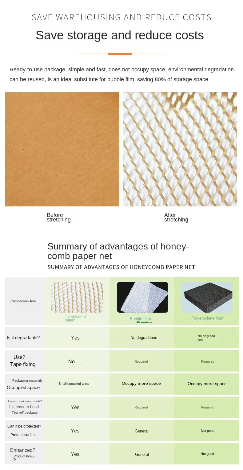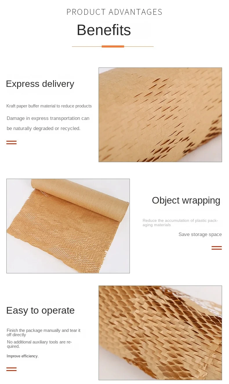 Brown Easy to tear Honeycomb Paper Roll Paper for Fragile Goods Recyclable Protection Buffer Wrapping Material
