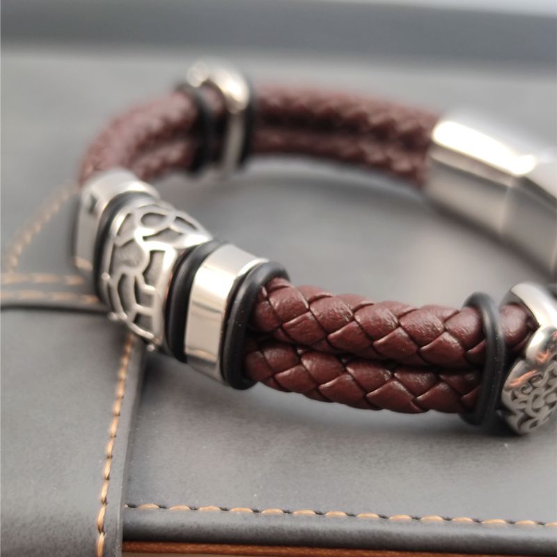 Brown Luxury 316L Stainless Steel Irregularly Cracked Man Bracelet Genuine Braided Leather Men's Jewelry Free Shipping Items