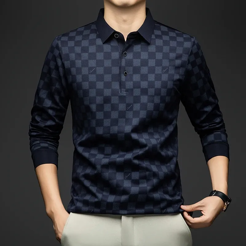 BROWON Polo Shirts for Man Autumn Business Slim Fit Long Sleeve T Shirt Men 2025 New Casual Loose Pullover Plaid Men Tops & Tees