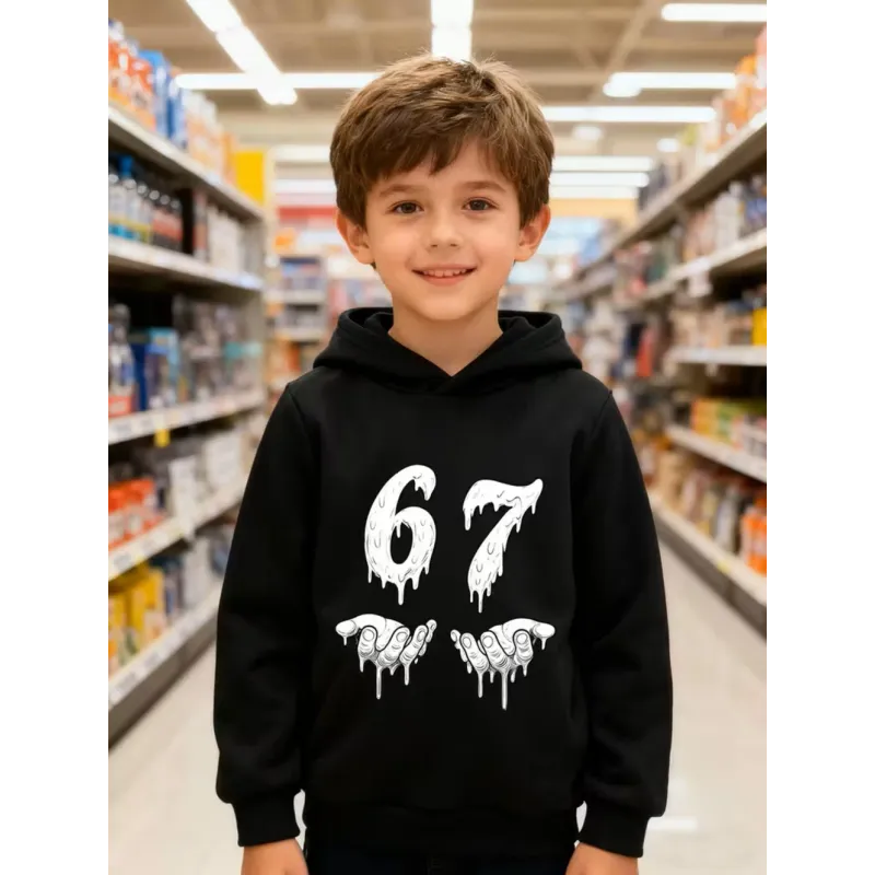 Bruh 67 Six Seven Funny Brainrot Meme Children's Hoodie Boys Girl Hooded Pullover Hiphop Streetwear Soft Casual Warm Sweatshirt