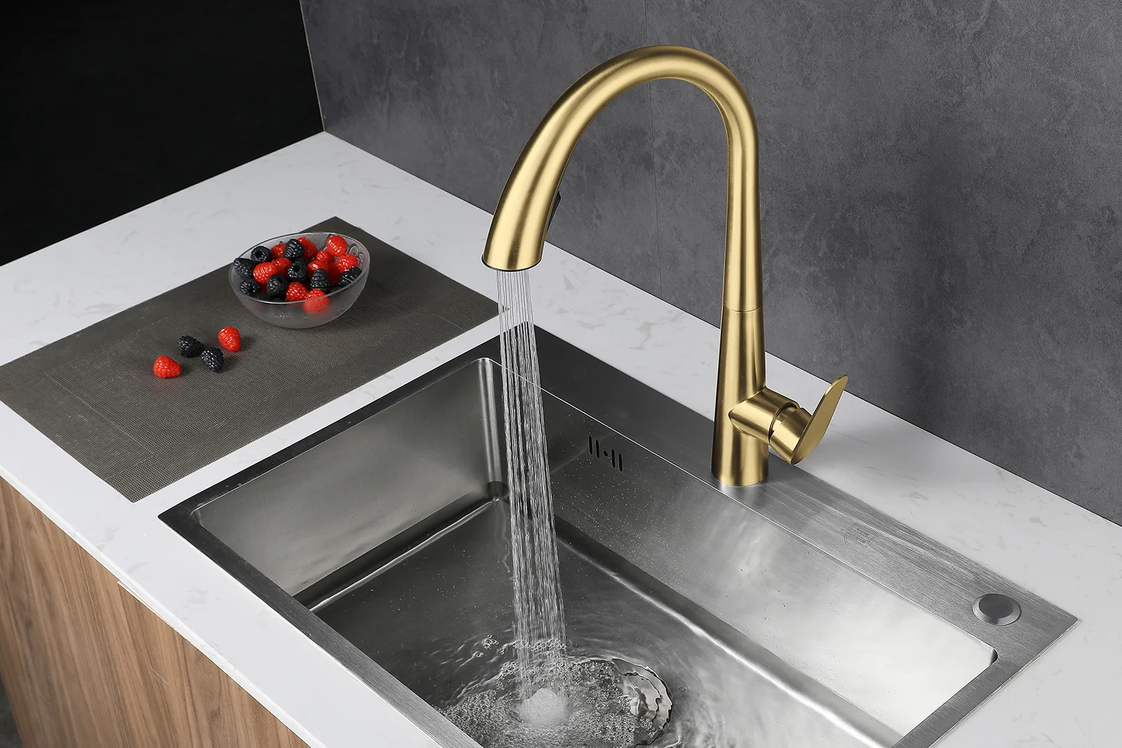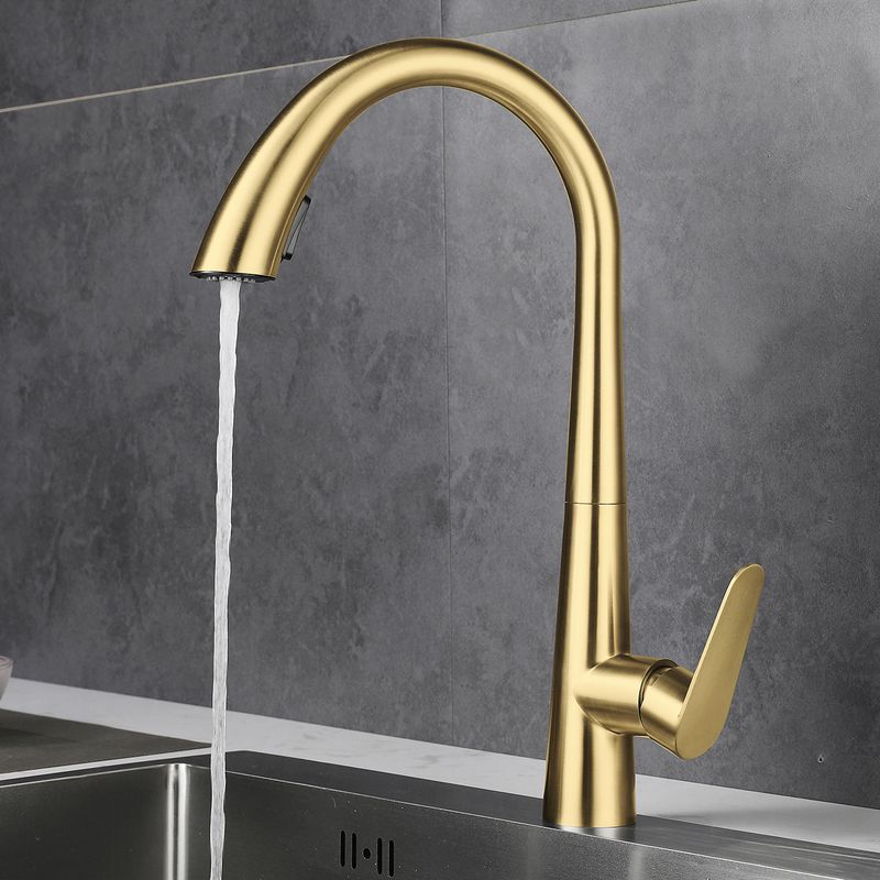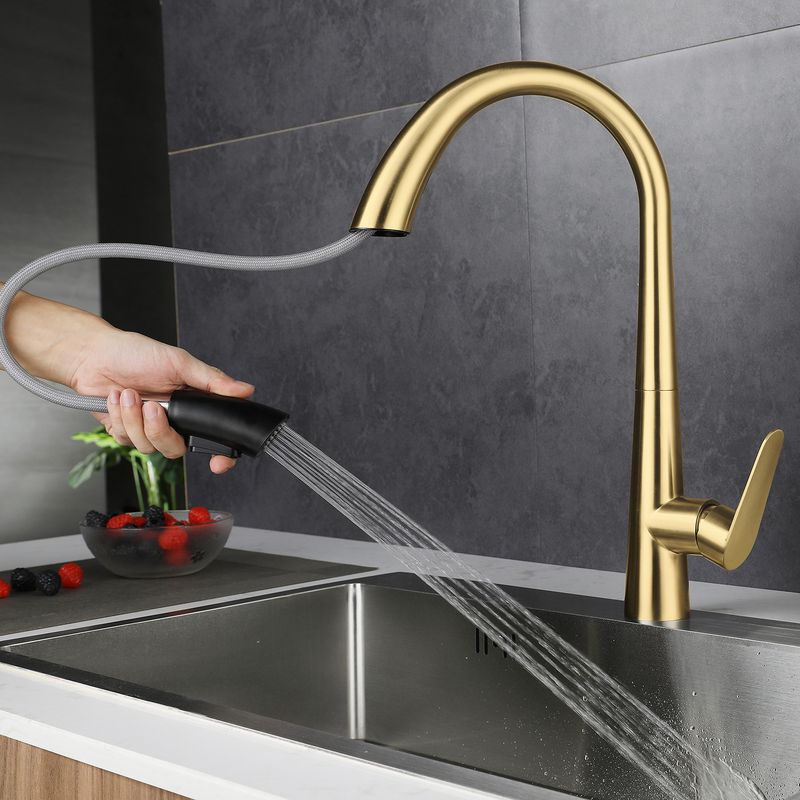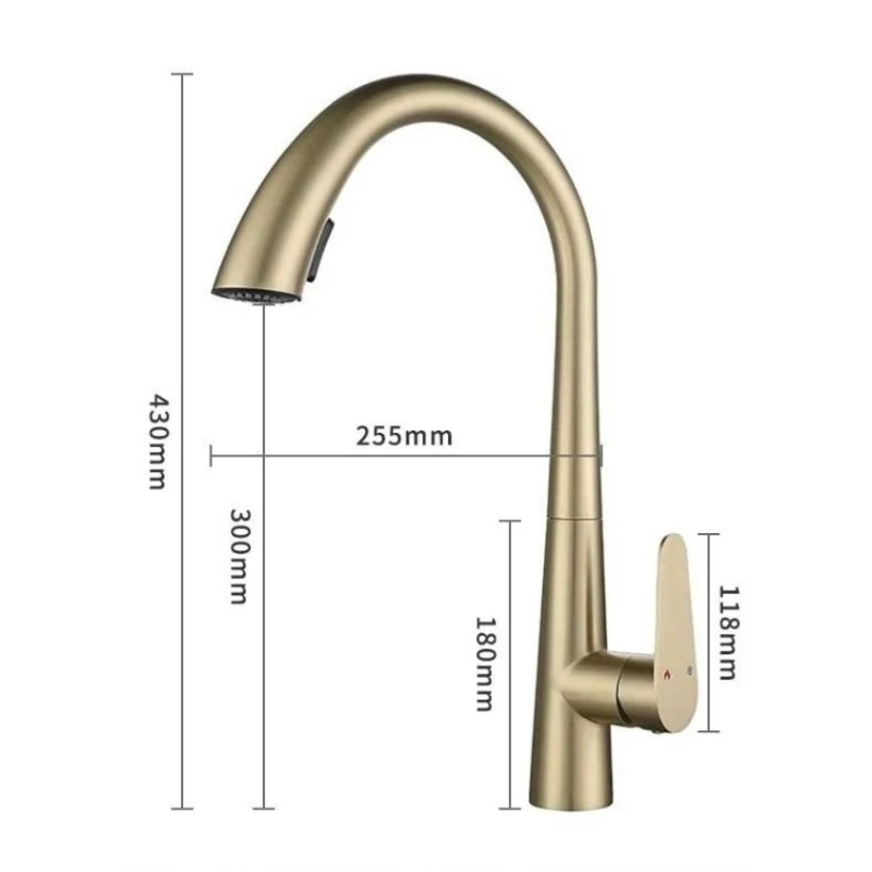 Brushed Gold 304 Stainless Steel Kitchen Pull-Out Tap Sink Vegetable Washing Basin Dishwashing Basin Telescopic Hot and Cold Tap