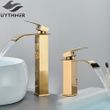 Brushed Golden Basin Faucets Elegant Waterfall Bathroom Sink Faucet Single Lever Hole Deck Mount Brass Mixer Taps