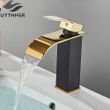 Brushed Golden Basin Faucets Elegant Waterfall Bathroom Sink Faucet Single Lever Hole Deck Mount Brass Mixer Taps