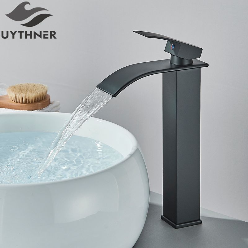 Brushed Golden Basin Faucets Elegant Waterfall Bathroom Sink Faucet Single Lever Hole Deck Mount Brass Mixer Taps