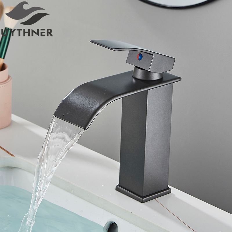 Brushed Golden Basin Faucets Elegant Waterfall Bathroom Sink Faucet Single Lever Hole Deck Mount Brass Mixer Taps