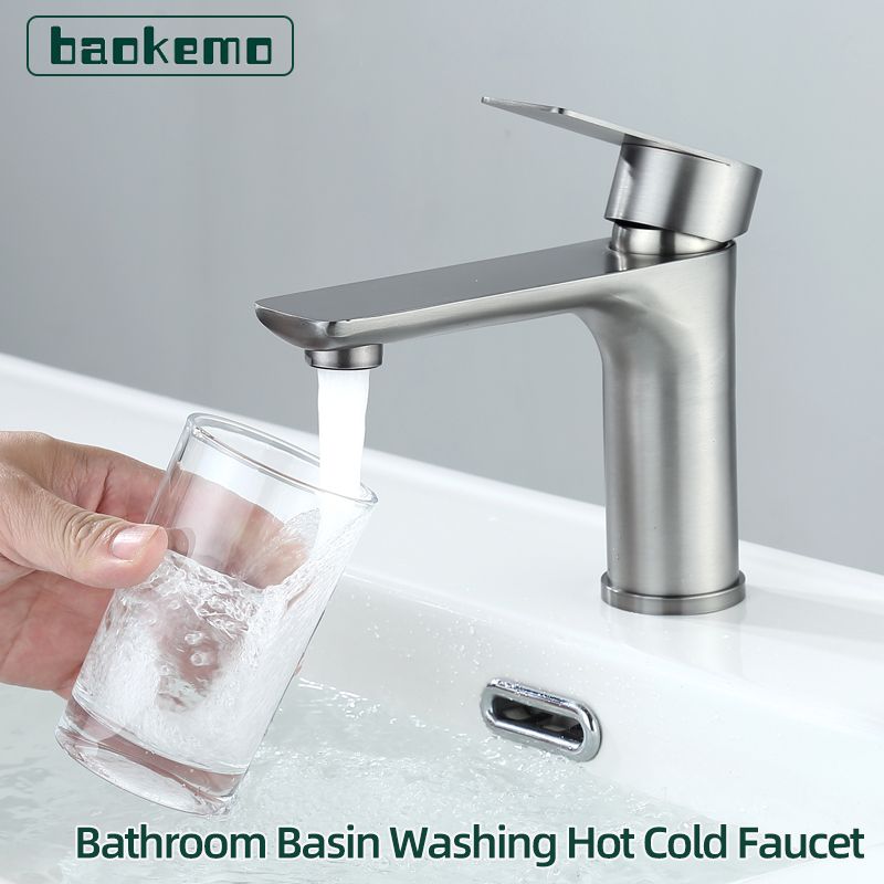 Brushed/Gray Bathroom Sink Faucet Hot and Cold Mixer Faucet Countertop Mount 304 Stainless Steel Single Handle