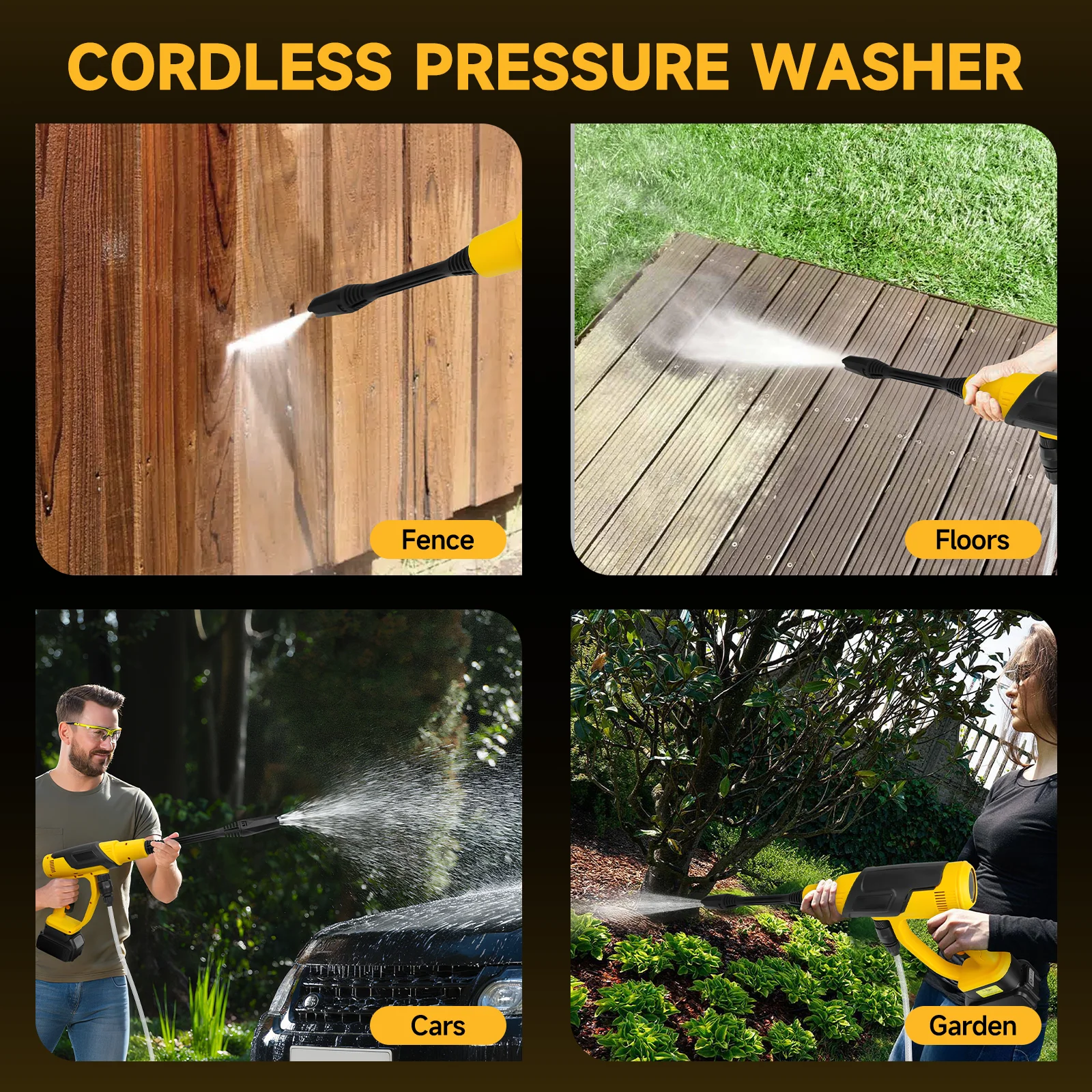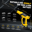 Battery Powered: Cordless power washer gun for dewalt 20v lithium-ion batteries DCB206 DCB205 DCB204 DCB181 DCB182 DCB200 DCB203 DCB205-2 DCB204-2 DCB206-2 and more. Easy to use even when there is no power supply outdoors, as long as you bring batteries. And you no longer need to be tethered to an outlet or struggle with tangled cords, making it easy to work in tight spaces, on job sites, or outdoors. Warm tip: this product does not include batteries.