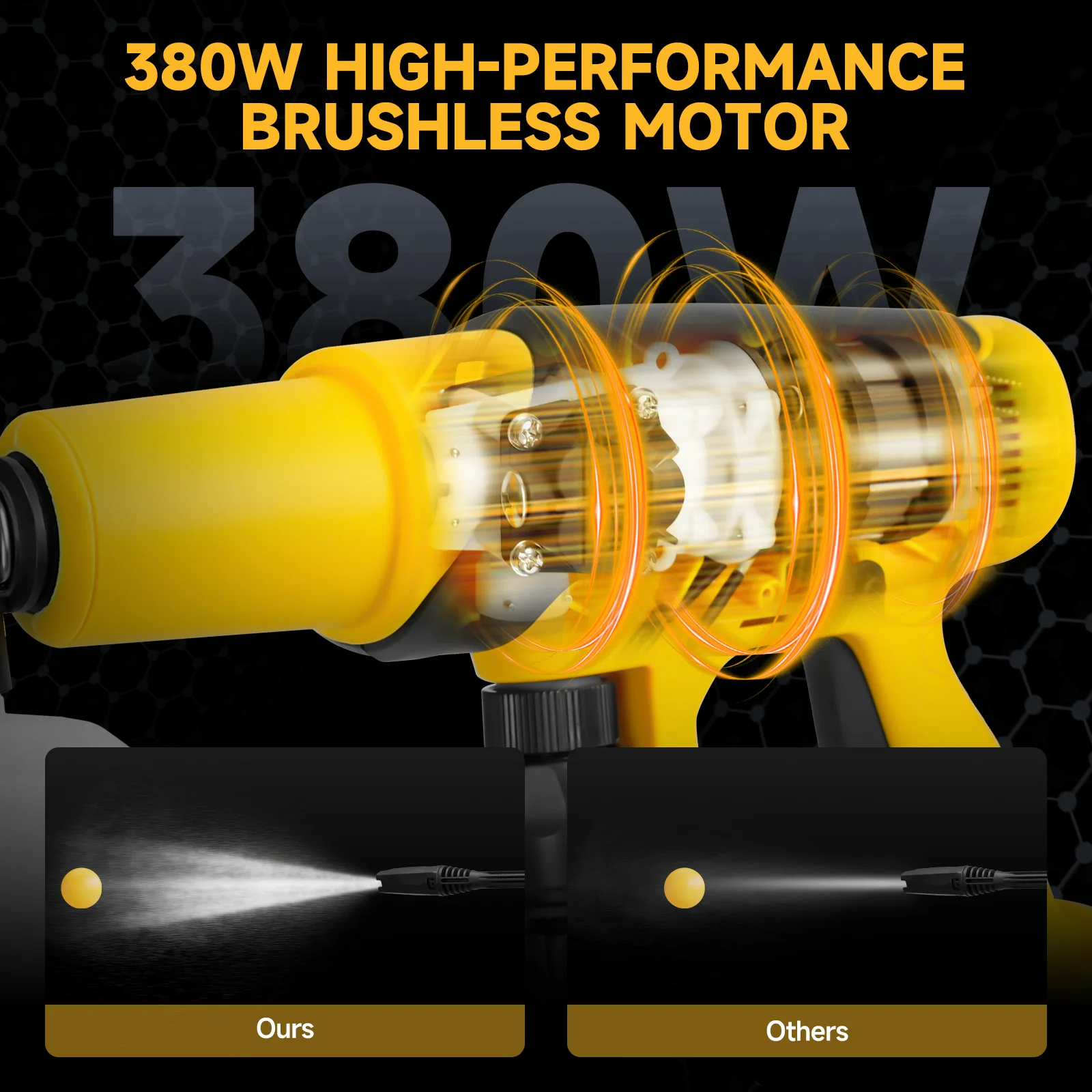 Upgraded Brushless Motor: The RexLeLXB cordless pressure washer is equipped with an upgraded 380W high-power brushless motor, which has a longer service life and superior performance compared to other pressure washers with brushed pure copper motors. High efficiency, low energy consumption, stable operation, low noise, durable, capable of handling any cleaning task.