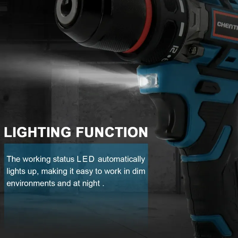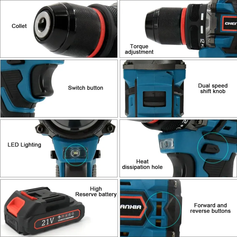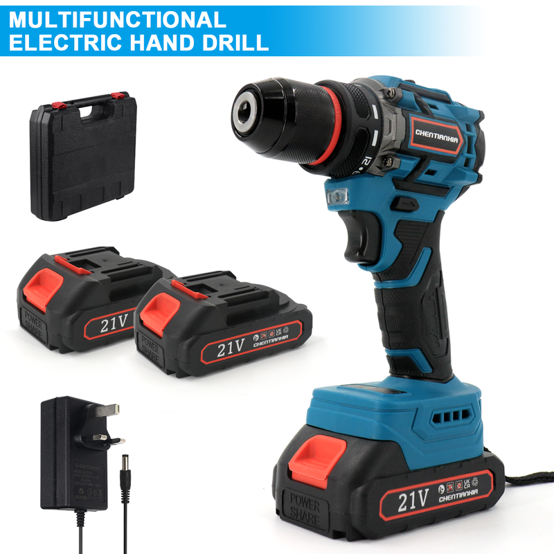 – Powerful electric drill can provide up to 50N.M torque, 25+3 position clutch can better adjust torque accuracy. 2 No-load Speed transmission (0-450 and 0-1450 RPM) for a range of drilling tightening or unscrewing screws on wood, metal and plastic. 3 in 1 working mode (Hammer, Driver, Drill).