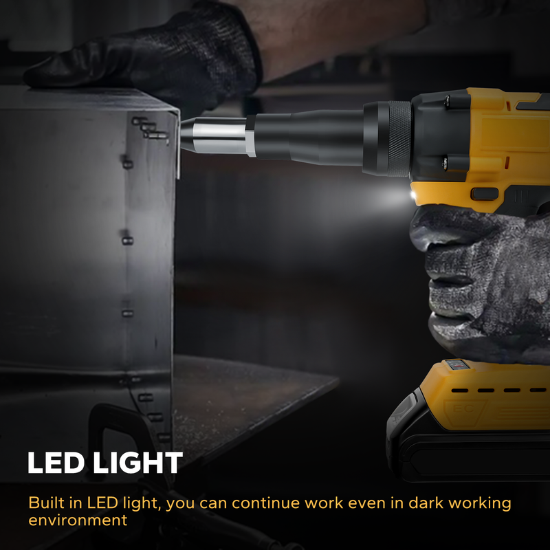 【One button to switch forward and reverse】Intelligent one-click operation, simple and fast. One operation takes only 2-5 seconds (depending on the material of the rivets). Automatic nail pulling and nail withdrawal, no need to switch between forward and reverse rotation. If the nail does not pull out, the switch button can be easily converted to reverse until the nail is completely pulled out.