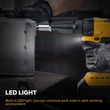 【Brushless Motor】Compared to brushed motors, it does not produce sparks and does not require the replacement of carbon brushes, giving you more safety and convenience. The Brushless motor enables the tool run cooler and 50% more efficient for longer life.