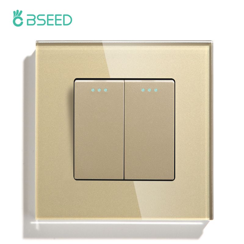 BSEED 1/2/3Gang Mechanical Wall Light Switch 1Way With Power Sockets USB Type-c Charging Ports EU Standard Glass Panel Gold