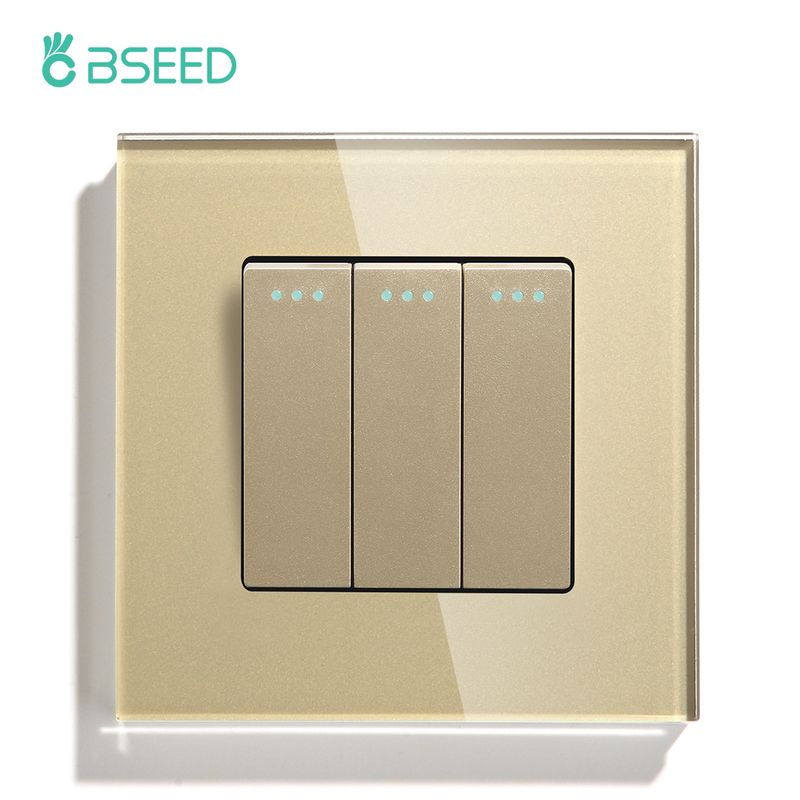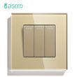 BSEED 1/2/3Gang Mechanical Wall Light Switch 1Way With Power Sockets USB Type-c Charging Ports EU Standard Glass Panel Gold