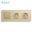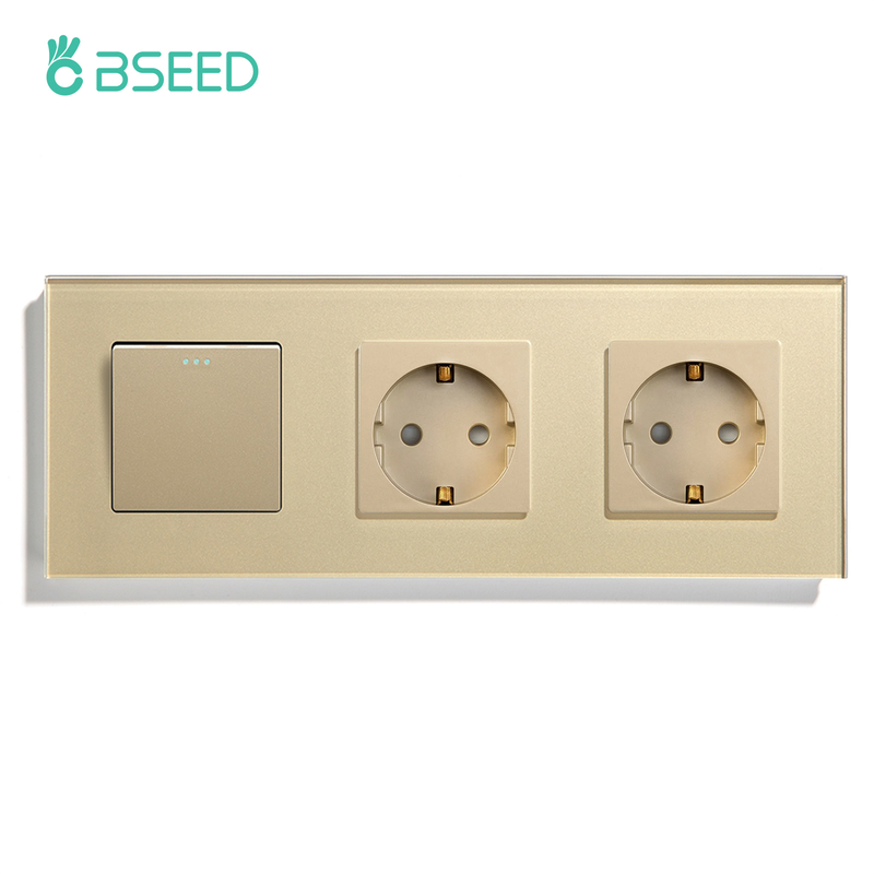 BSEED 1/2/3Gang Mechanical Wall Light Switch 1Way With Power Sockets USB Type-c Charging Ports EU Standard Glass Panel Gold