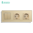 BSEED 1/2/3Gang Mechanical Wall Light Switch 1Way With Power Sockets USB Type-c Charging Ports EU Standard Glass Panel Gold
