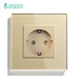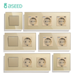 BSEED 1/2/3Gang Mechanical Wall Light Switch 1Way With Power Sockets USB Type-c Charging Ports EU Standard Glass Panel Gold