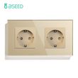 BSEED 1/2/3Gang Mechanical Wall Light Switch 1Way With Power Sockets USB Type-c Charging Ports EU Standard Glass Panel Gold