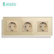 BSEED 1/2/3Gang Mechanical Wall Light Switch 1Way With Power Sockets USB Type-c Charging Ports EU Standard Glass Panel Gold