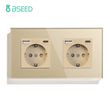 BSEED 1/2/3Gang Mechanical Wall Light Switch 1Way With Power Sockets USB Type-c Charging Ports EU Standard Glass Panel Gold