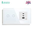 BSEED 65W Quick Charge USB Port Glass Panel Power Wall Socket Type C Power Delivery Charge USB Socket EU Light Touch Switches