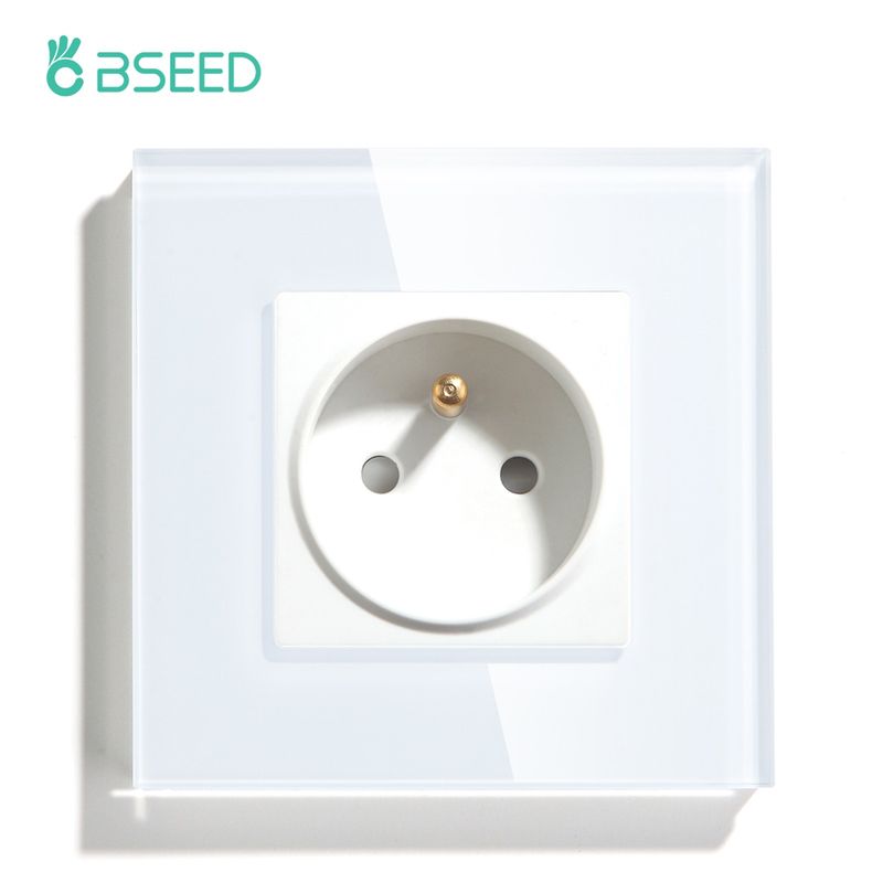BSEED France Standard Single Wall French Socket Double Power Plug With White Black Gloden Crystal Glass Panel 16A 110V-250V