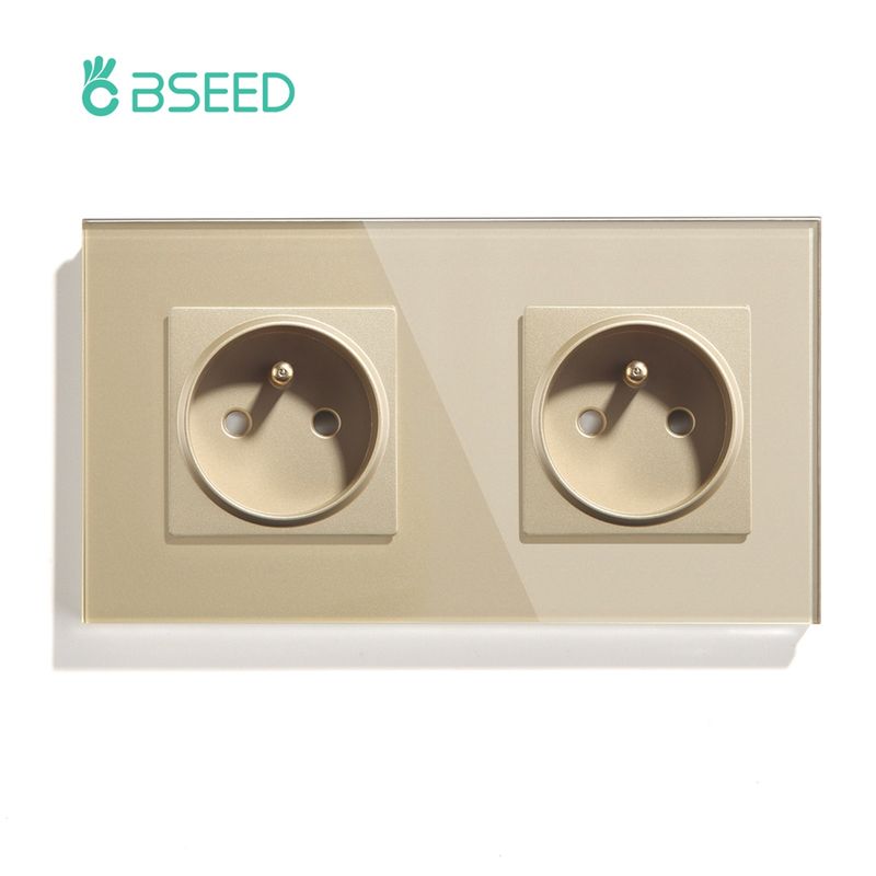 BSEED France Standard Single Wall French Socket Double Power Plug With White Black Gloden Crystal Glass Panel 16A 110V-250V