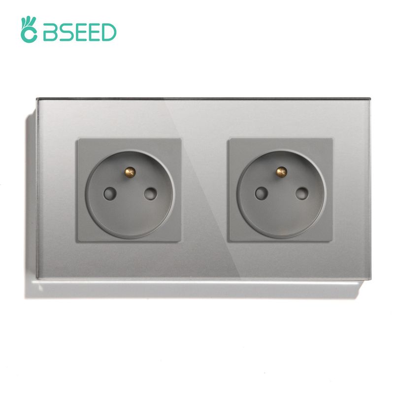 BSEED France Standard Single Wall French Socket Double Power Plug With White Black Gloden Crystal Glass Panel 16A 110V-250V