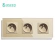 BSEED France Standard Single Wall French Socket Double Power Plug With White Black Gloden Crystal Glass Panel 16A 110V-250V