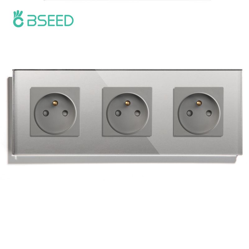 BSEED France Standard Single Wall French Socket Double Power Plug With White Black Gloden Crystal Glass Panel 16A 110V-250V