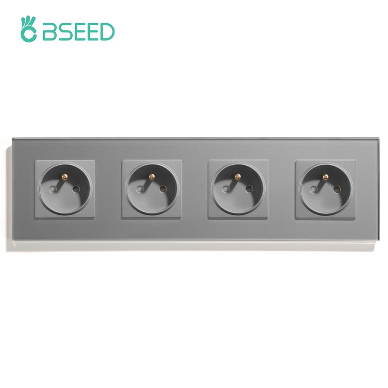 BSEED France Standard Single Wall French Socket Double Power Plug With White Black Gloden Crystal Glass Panel 16A 110V-250V