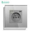 BSEED France Poland Standard Single Wall Socket Power Plug With White Black Gloden Mirror Crystal Glass Panel 86mm 16A 110V-250V