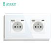 BSEED France Standard Single Wall French Socket Double Power Plug With White Black Gloden Crystal Glass Panel 16A 110V-250V
