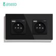BSEED France Standard Single Wall French Socket Double Power Plug With White Black Gloden Crystal Glass Panel 16A 110V-250V