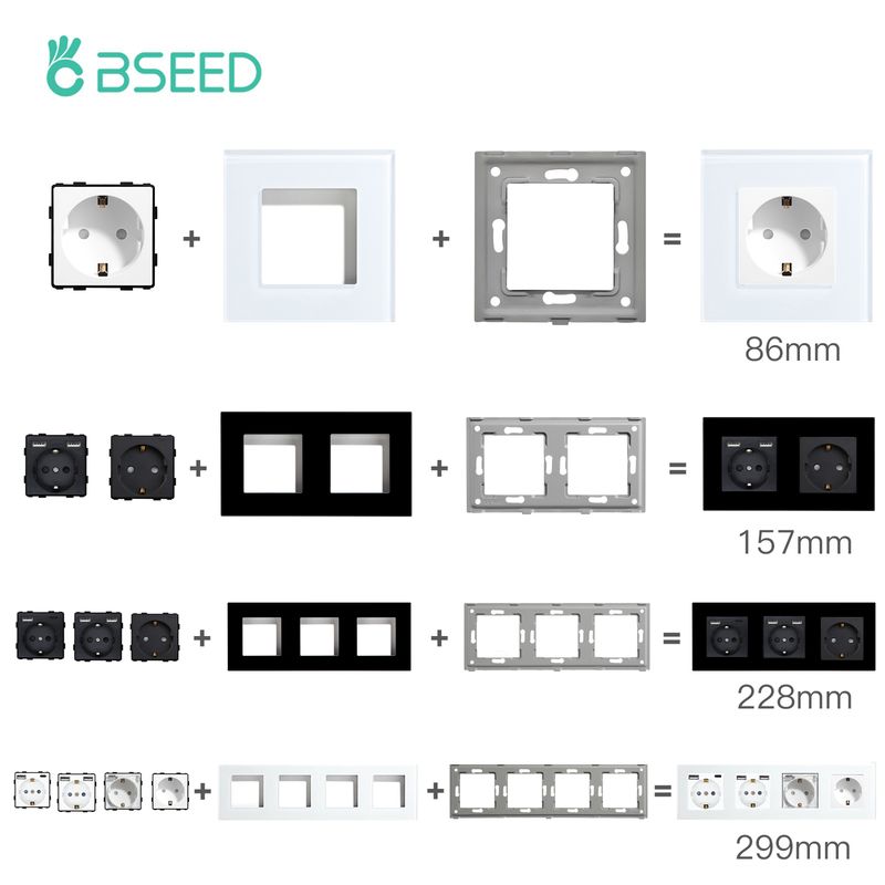 BSEED Glass Frame Panel Single Double Frames Wall Socket Part Triple Four Frames DIY Part with Metal Frames USB TYPE-C Socket