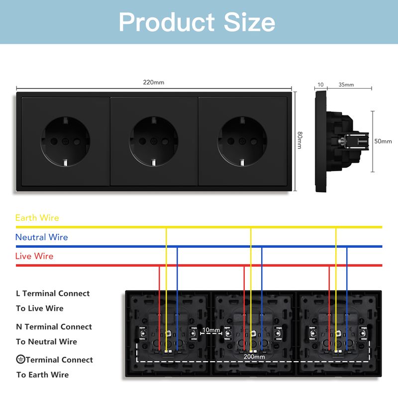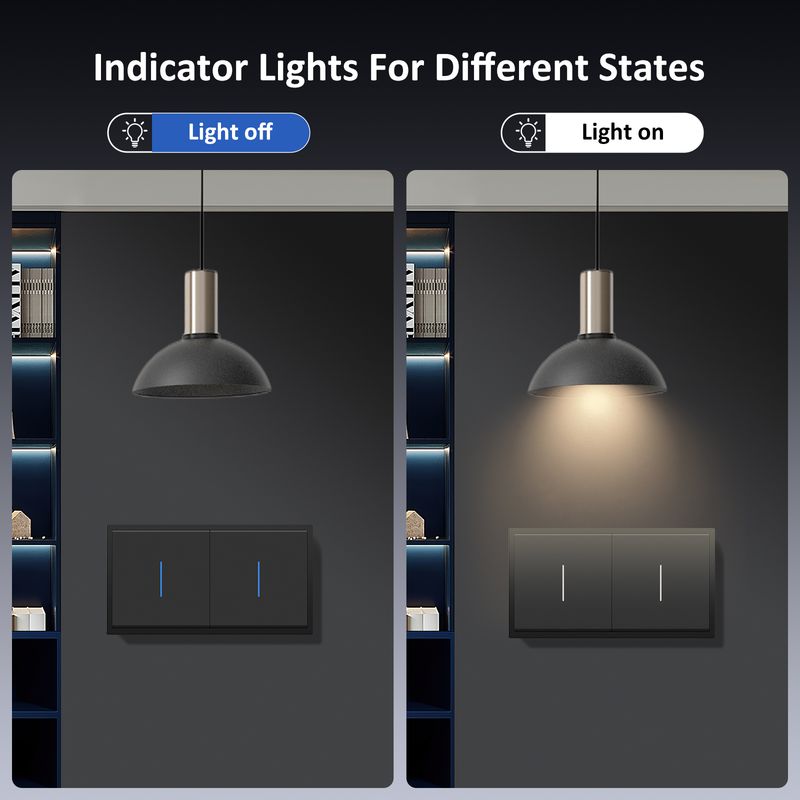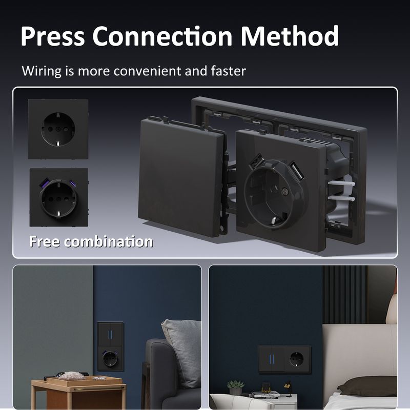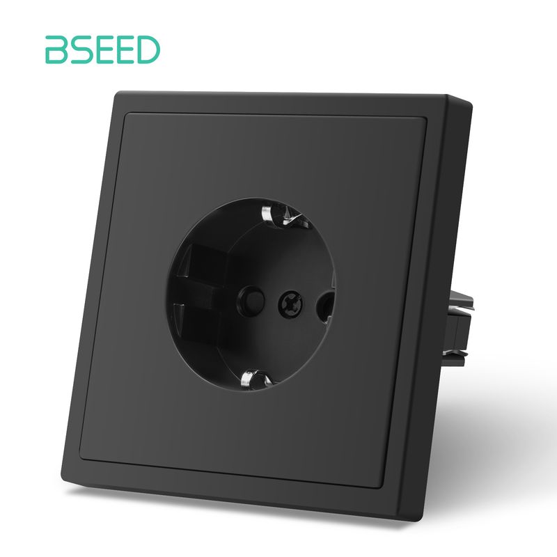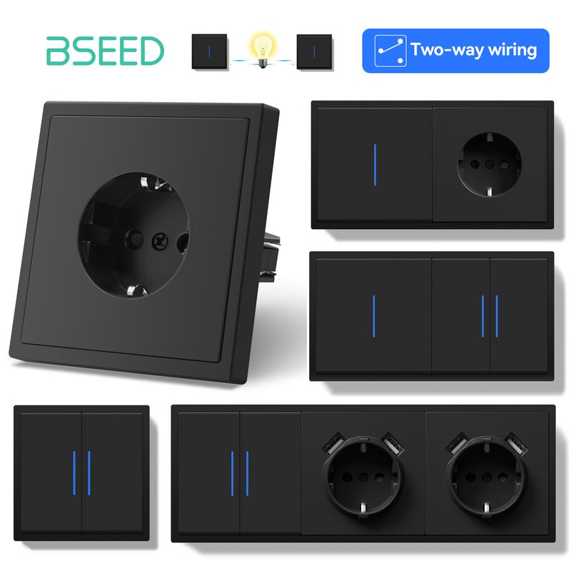 BSEED Large Button Switch LED Indicator 2Way Wall Light Switches USB Phone Charge Port Wall Power EU Sockets Black E-Series