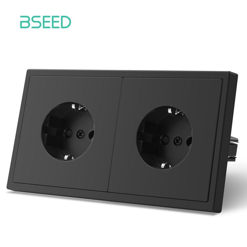 BSEED Large Button Switch LED Indicator 2Way Wall Light Switches USB Phone Charge Port Wall Power EU Sockets Black E-Series