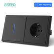 BSEED Large Button Switch LED Indicator 2Way Wall Light Switches USB Phone Charge Port Wall Power EU Sockets Black E-Series